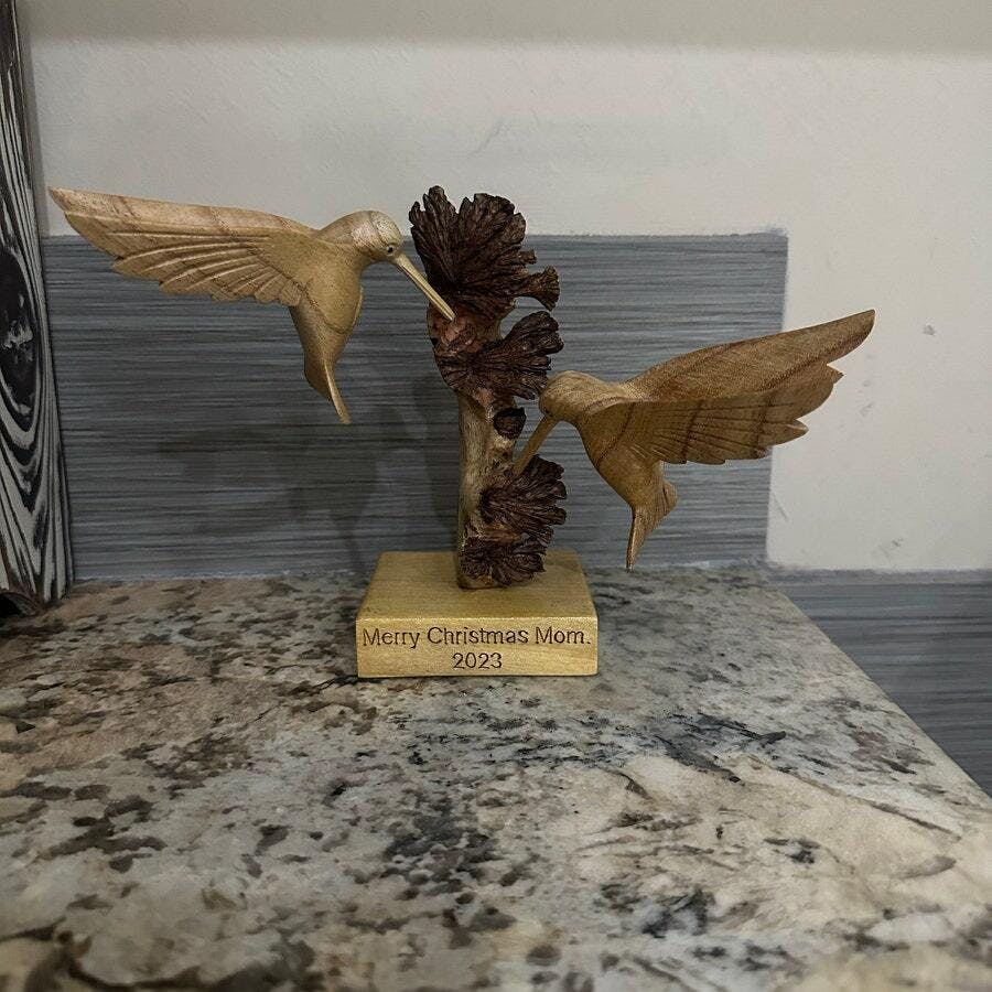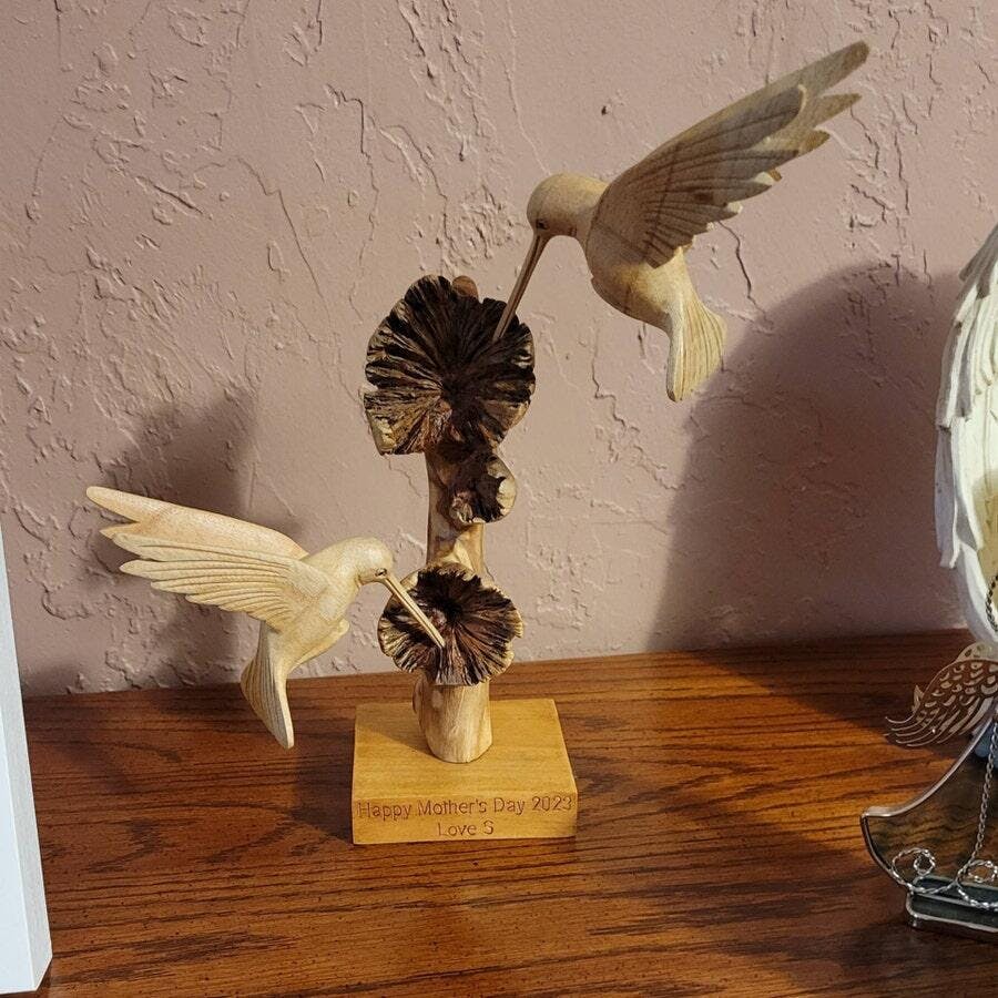 The hummingbirds are lovely but the “flower” looks like a moldy mushroom. My mom didn’t like the gift 🙁