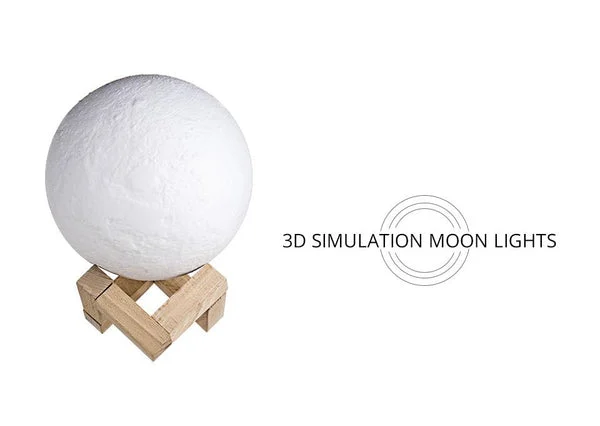 Enhance your surroundings with a touch of enchantment using this moon light! This remarkable lamp showcases a 3D-printed moon that will peer at you from the table or suspend by an adjustable arm, allowing it to cast its enchanting radiance wherever you desire. Our cutting-edge LED technology illuminates in all the hues of the rainbow and continues to glow throughout the night, offering a final gaze of celestial grandeur as you drift off to sleep.