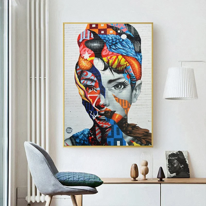Abstract Graffiti Lady artwork will adorn your walls and infuse fresh energy into your spaces! Ideal for placement above a bed or sofa – anywhere that needs a stylish touch and deserves a striking visual impact.