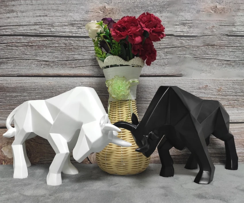 Black White Bull Abstract Animal Ornaments Gift Sculptures and Statues