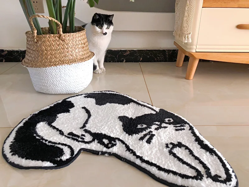 Step right up for a delightful hello and goodbye! Cat enthusiasts will adore this incredibly charming cat-themed floor mat that is gentle and comforting under your feet. A friendly black and white cat face greets you with a smile as you enter. The mat features a sturdy rubber backing to keep it securely in place, along with an anti-slip coating making it a breeze to clean off dirt with just a simple wash using soap and water!