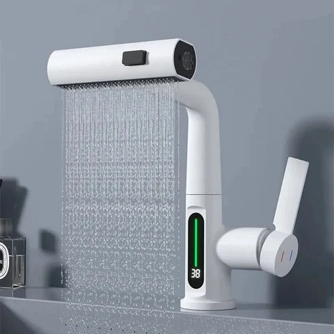 The modern display screen of this smart faucet automatically indicates the water temperature, preventing accidental burns from hot water. It operates on water energy, eliminating the need for external power sources or batteries, promoting energy efficiency and environmental sustainability.