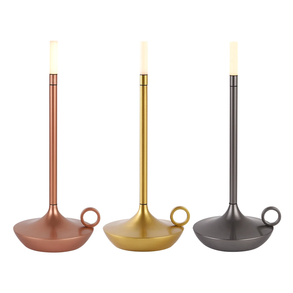 Introducing the Innovative Rechargeable Candle Table Lamp, a sleek and practical lighting solution for your living space or business. This elegant piece adds a touch of charm and coziness to any setting.