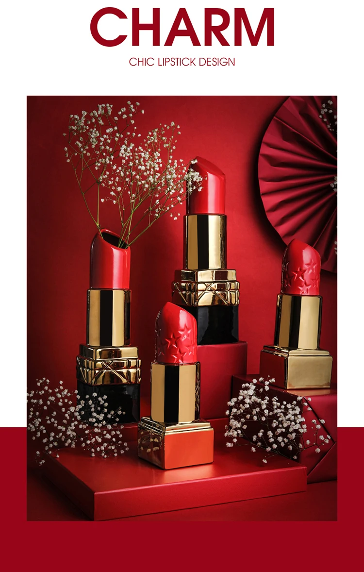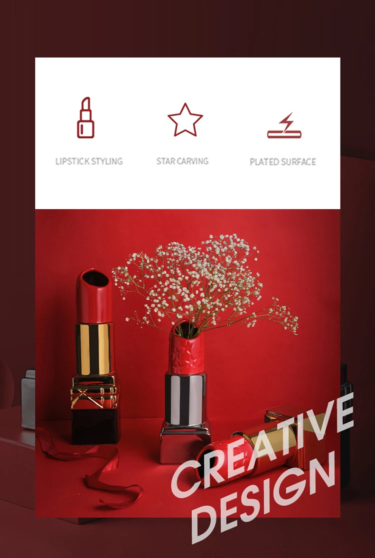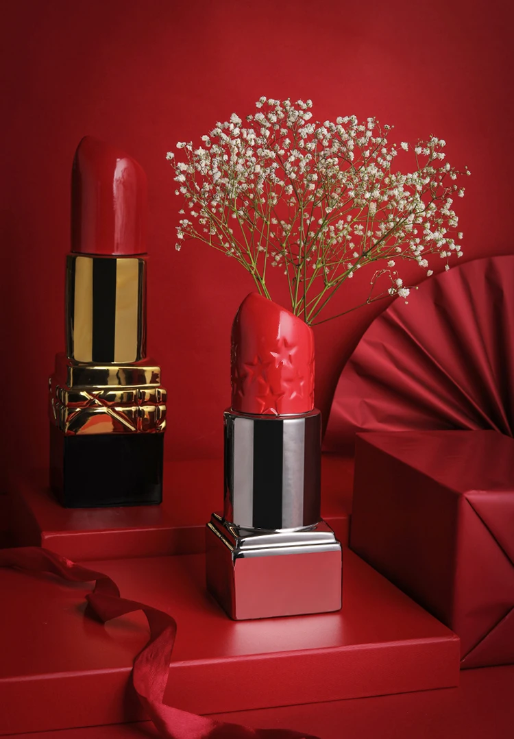 This stylish lipstick-shaped vase is an ideal present for those who adore lipsticks and appreciate unique home décor items. Its elegant design, inspired by a lipstick, adds a touch of fascination that sets it apart from ordinary vases. Display it on a hallway console, a dressing table, or any other spot where you can marvel at its exquisite charm!