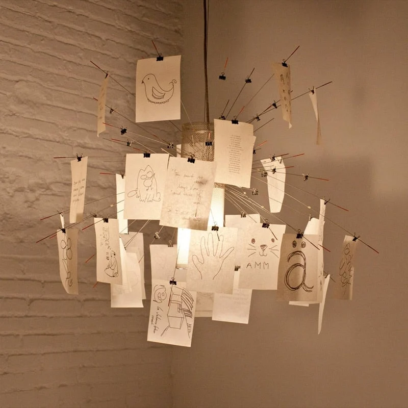 Dive into a world of possibilities with our DIY Illumination Ingo Maurer Zettel Chandelier. Personalize your lighting experience by adding photos, drawings, or any decorative elements that resonate with your aesthetic. Whether you’re creating a statement piece for your living room or adding a touch of flair to your bedroom, this chandelier combines functionality with artistic expression, elevating your space with modern elegance and personalized charm.