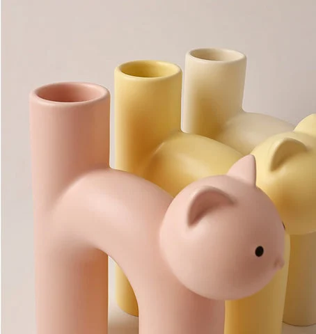 Elevate your space with the delightful Kitty Tube Vase! Meticulously crafted from fine ceramic and porcelain, this charming tabletop piece seamlessly blends cute charm with elegant style. Ideal for adding a touch of sophistication to any room with its understated matte finish.