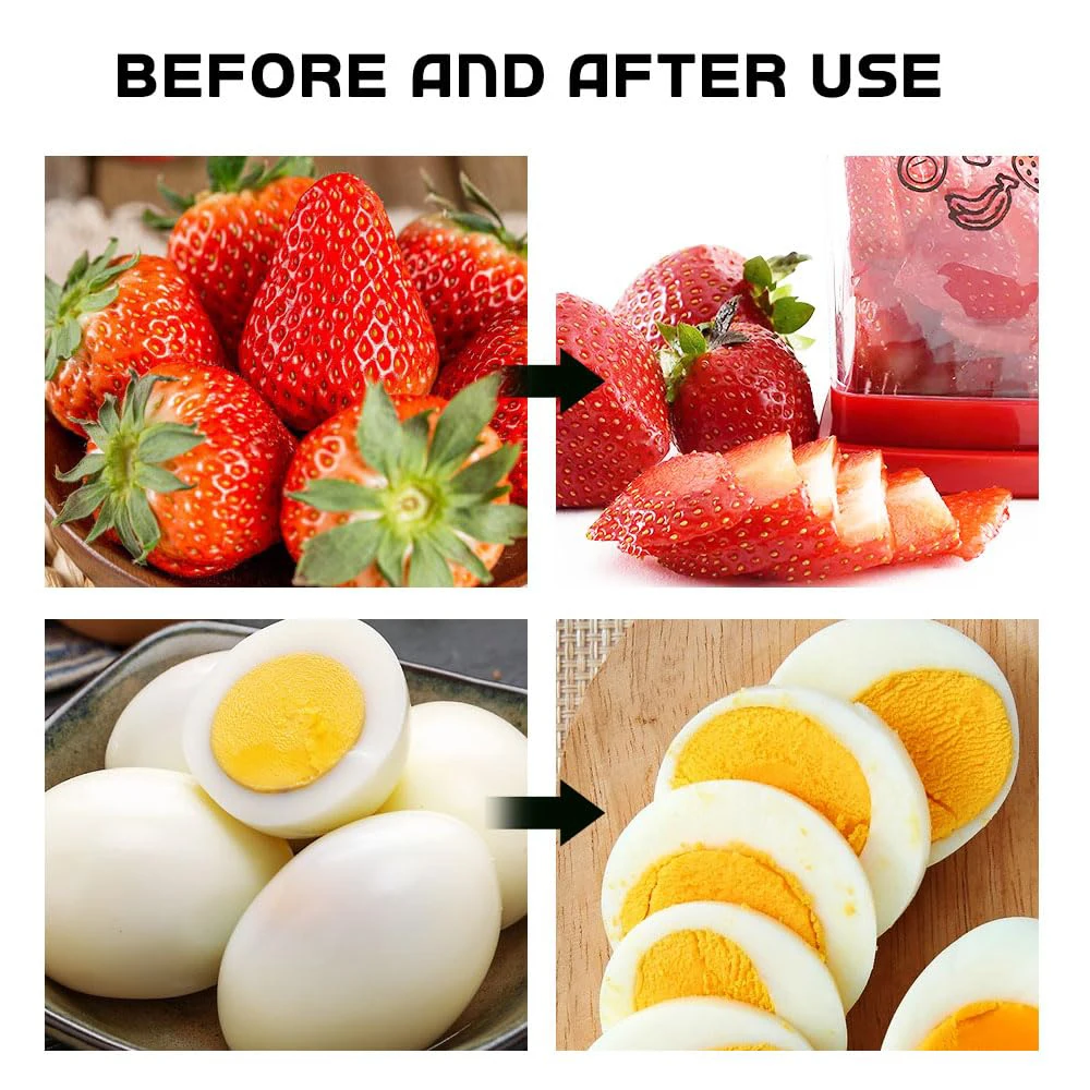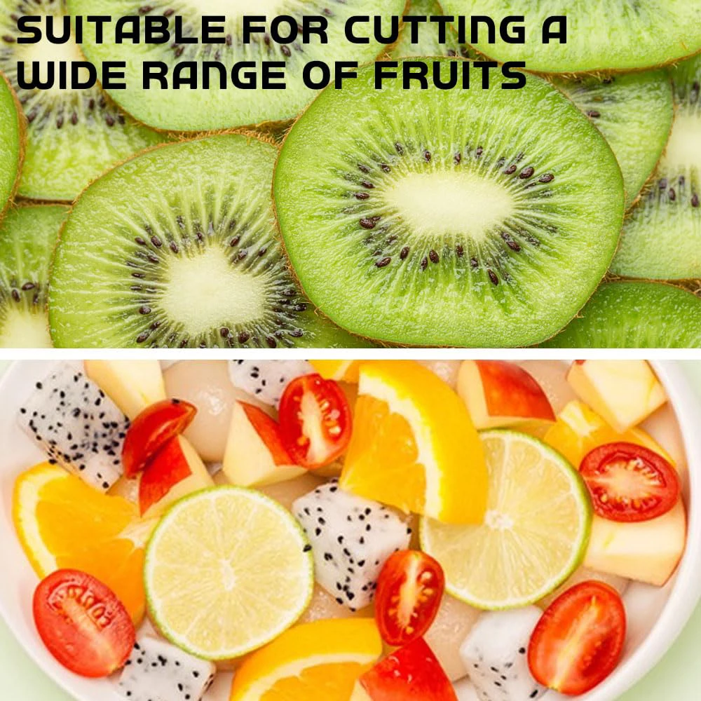 ��【Versatile Design】This cup slicer is perfect for a variety of fruits and vegetables like apples, strawberries, bananas, mangoes, and pineapples, offering a quick and efficient slicing solution.