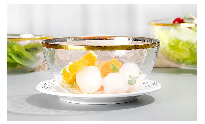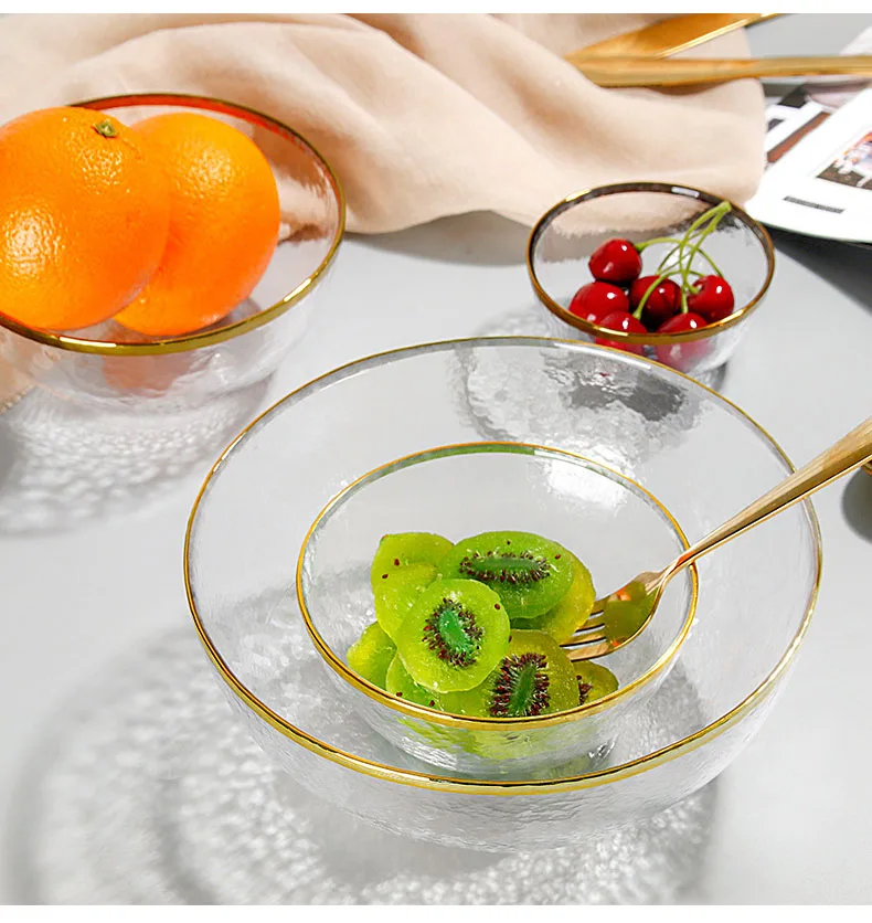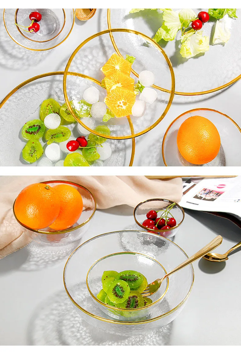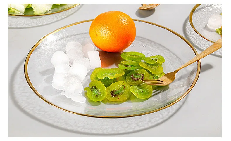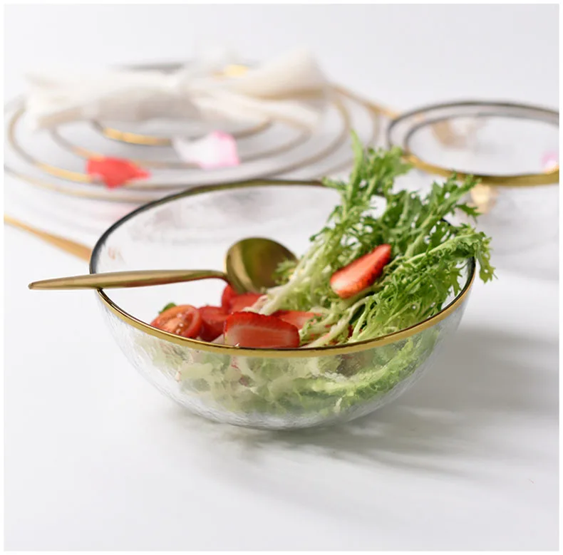 With this gold trim glass tableware, serving food is a breeze. Made with durable glass and featuring an elegant gold rim, these utilitarian-yet-upscale plates and bowls help you create memorable food displays. Use them for personal meals, the family dinner table, or a diner or cafe. These plates and bowls make excellent gifts too!