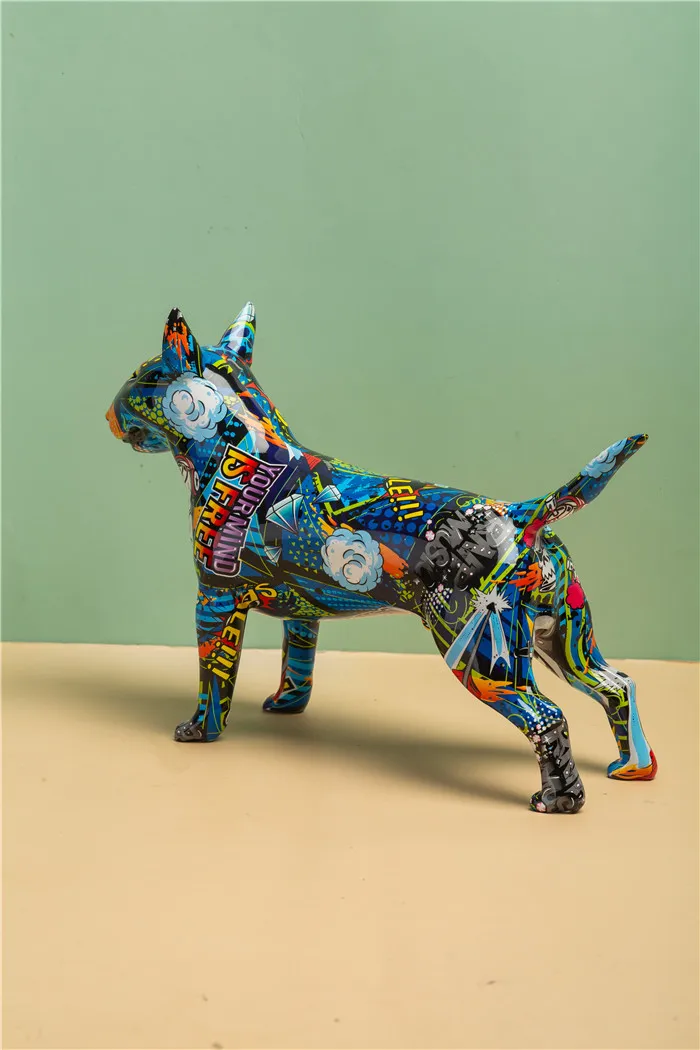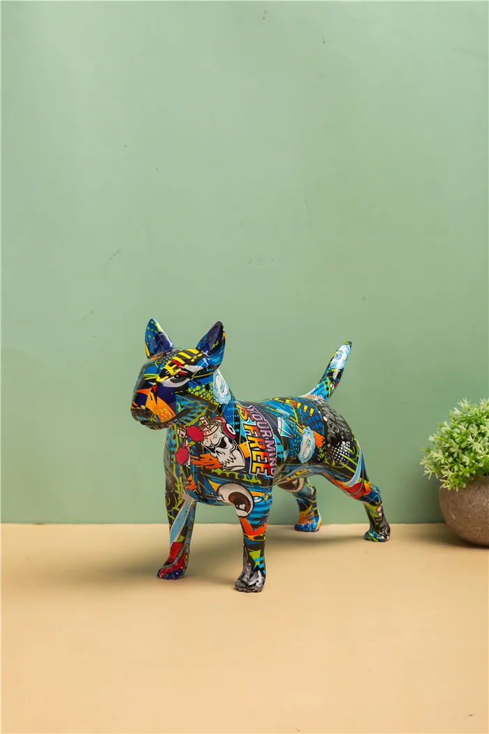 Graffiti Bullterrier Painted Sculptures and Statues Office Decor Resin Crafts -