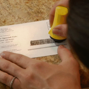 A sustainable choice to securely dispose of documents, allowing for easy recycling without the need for a shredder. The integrated ink means no mess with separate stamp pads.