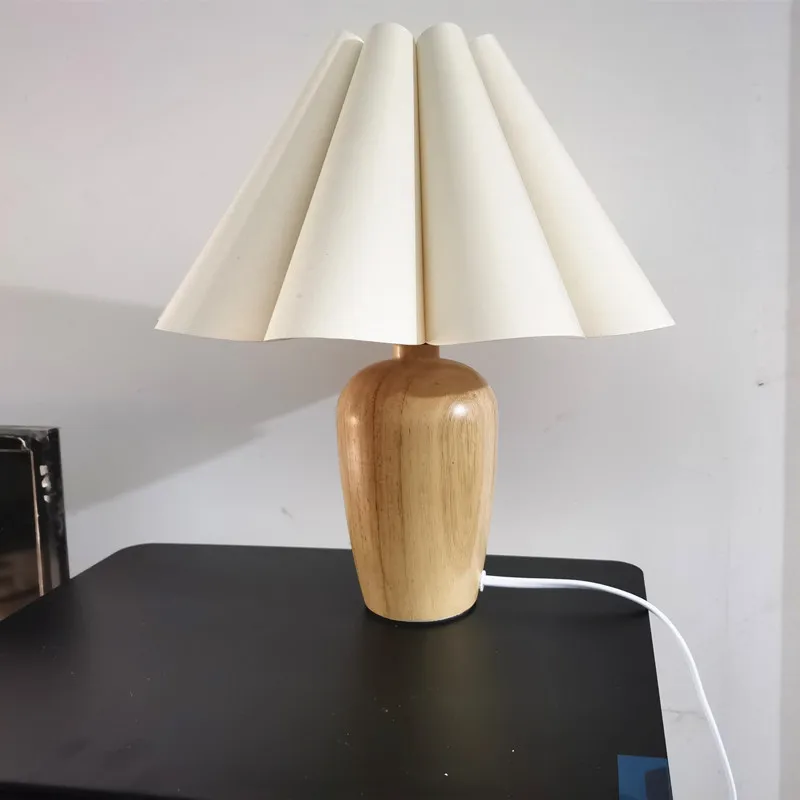 Japan Retro Wooden Table Lamp Fabric Desk Lighting Bedroom Bedside Lamp -