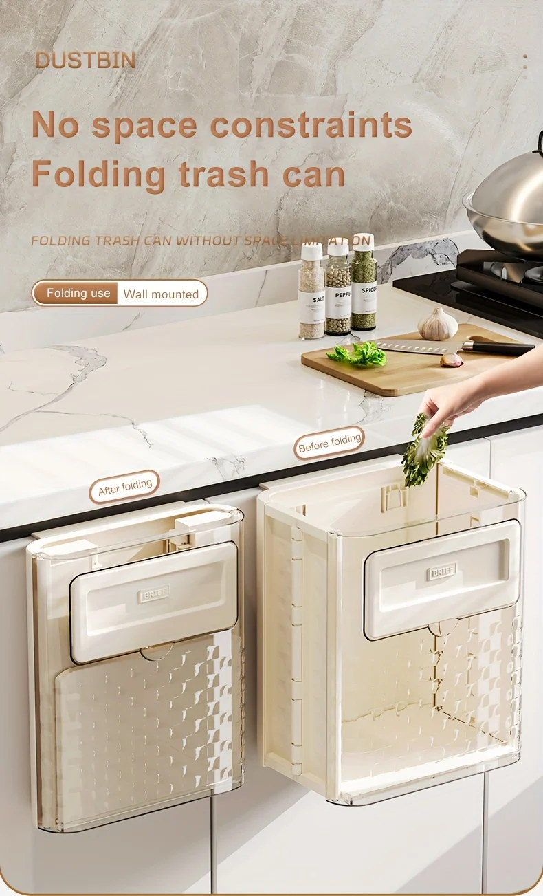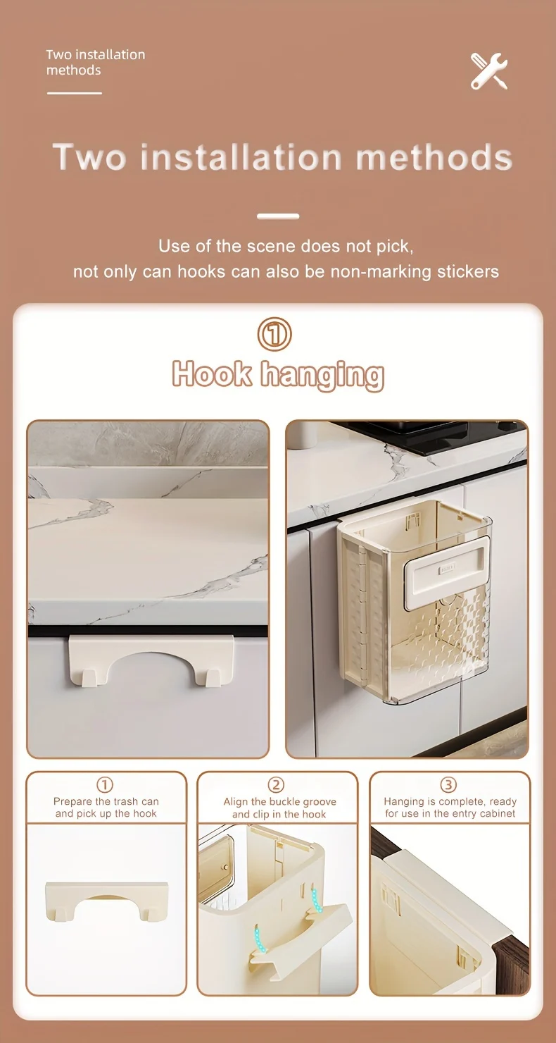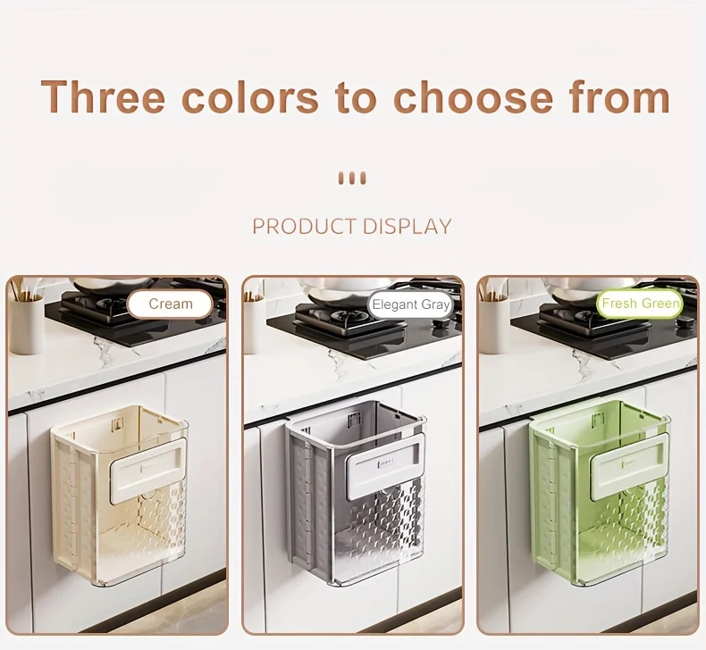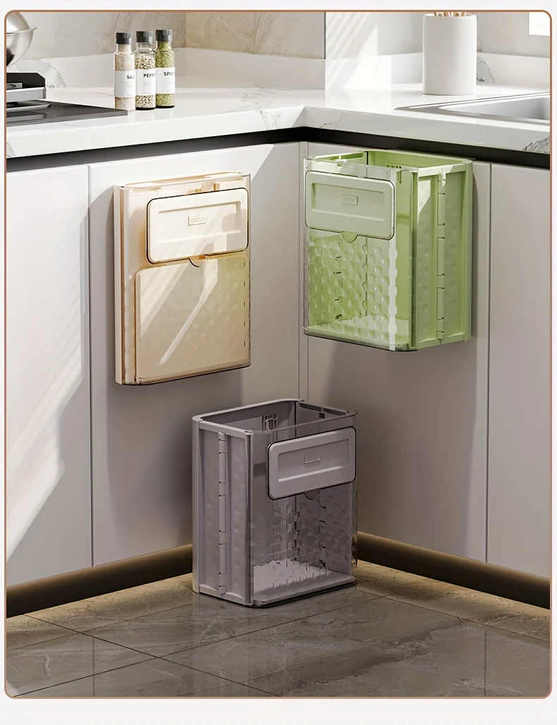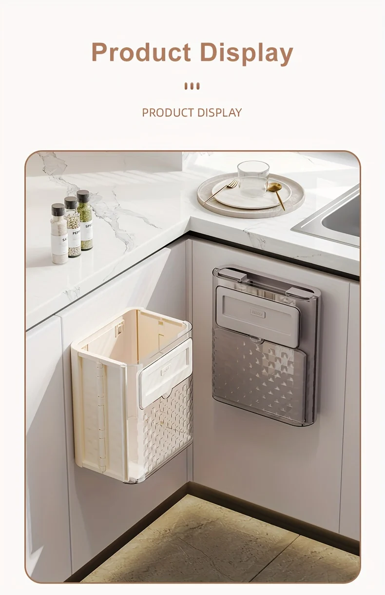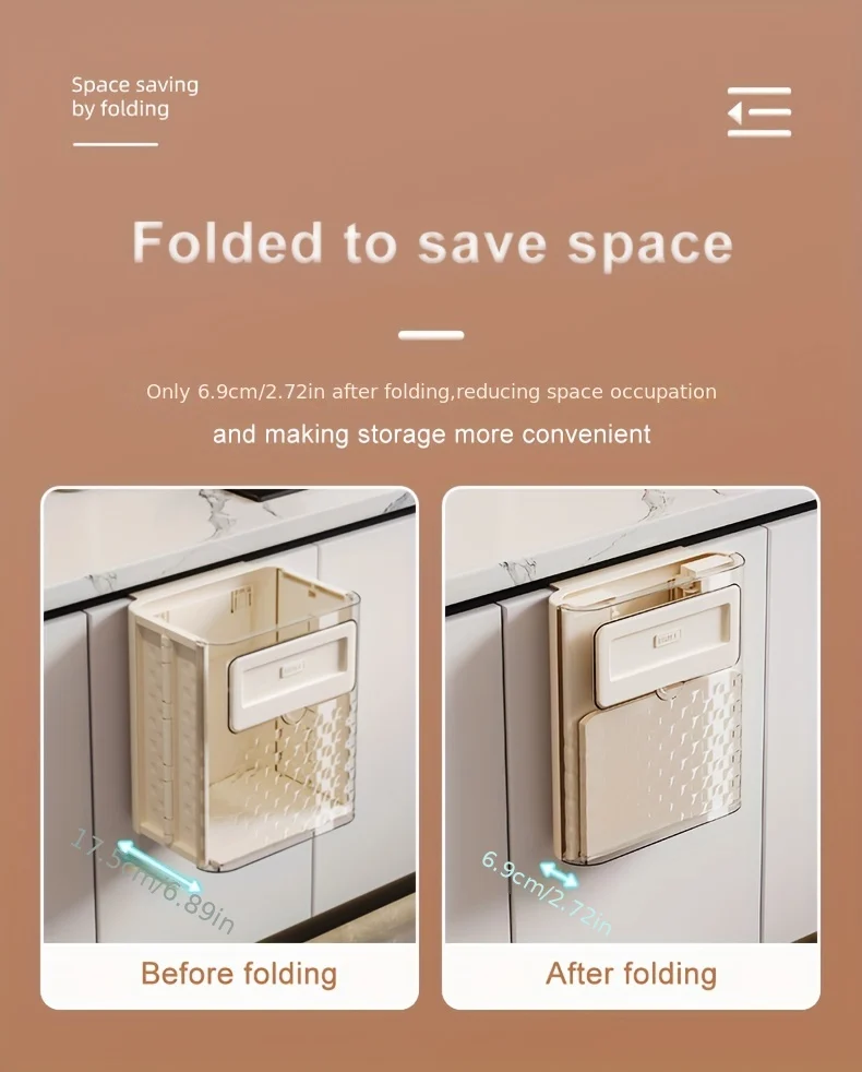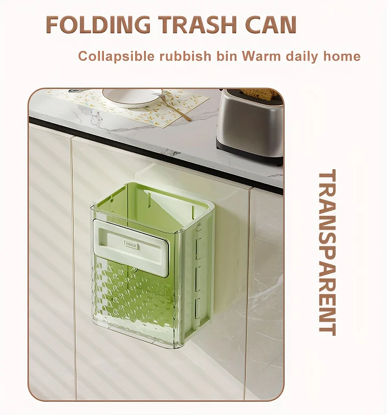 Get organized with this convenient 1pc Foldable Hanging Trash Can! Perfect for your kitchen, bathroom, bedroom, or office, this versatile storage solution helps you keep your space tidy and clutter-free.