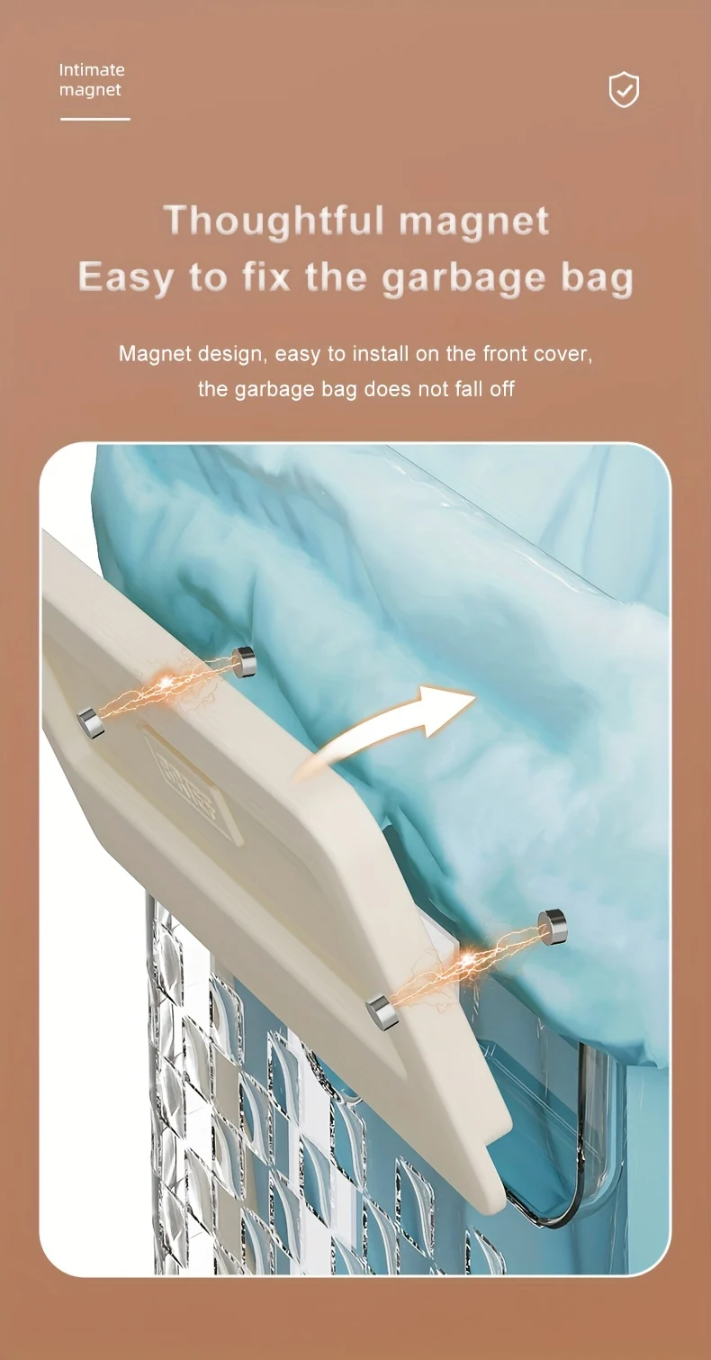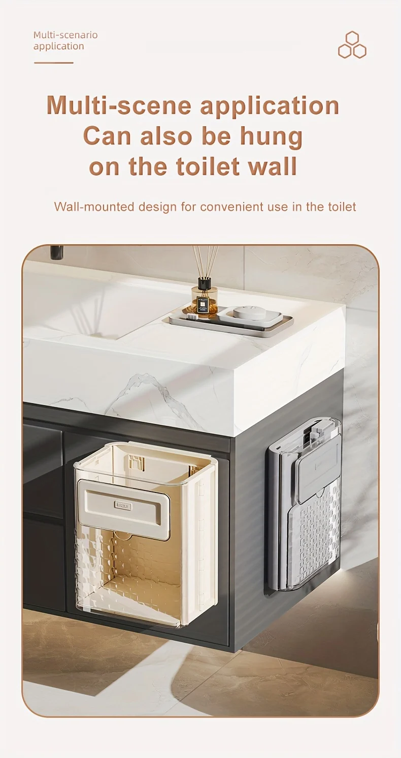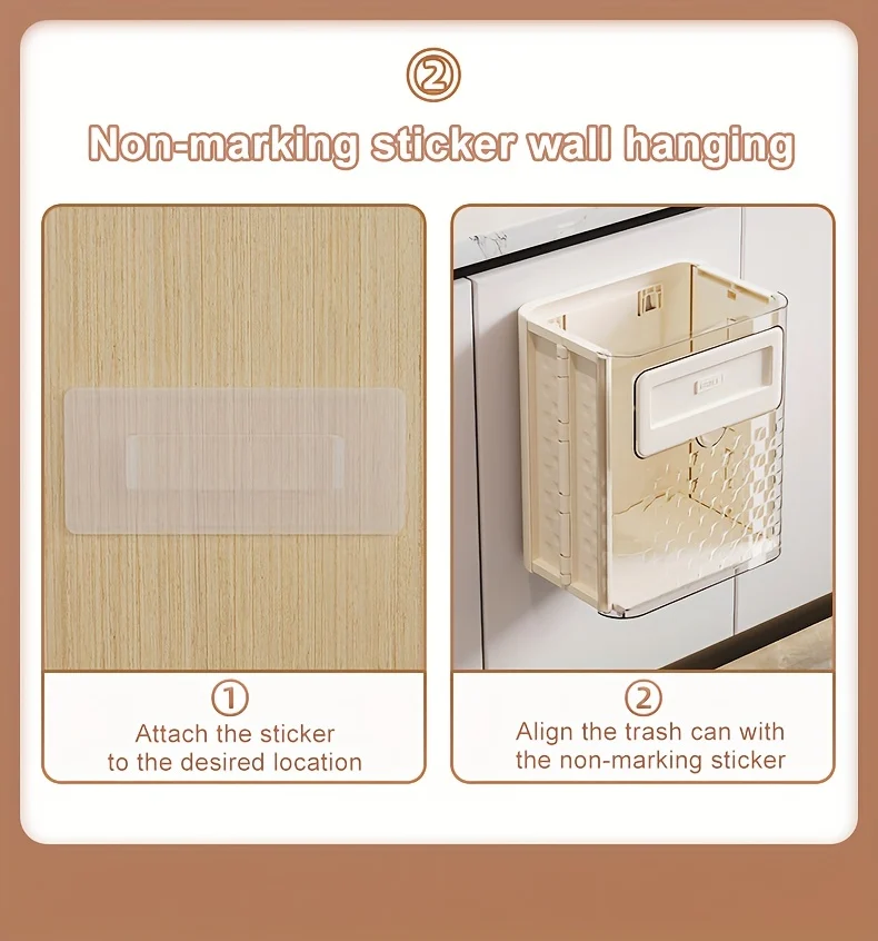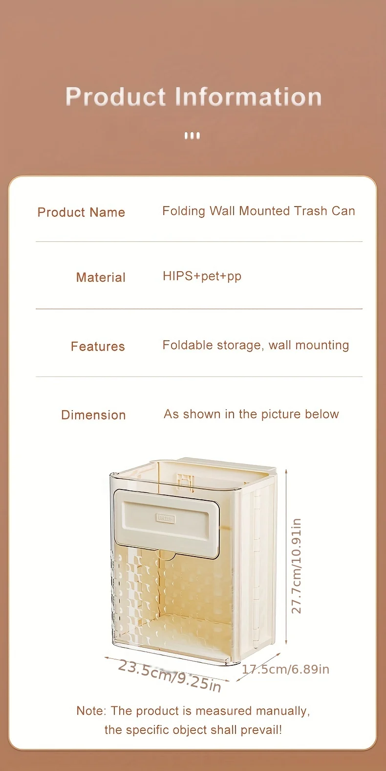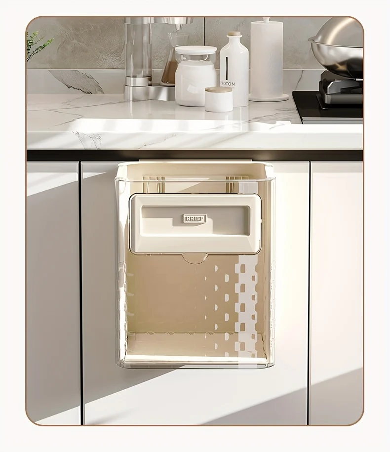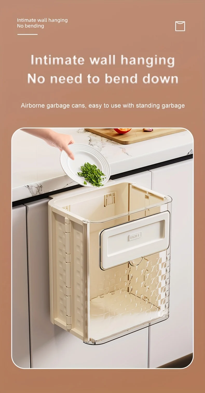 Get organized with this convenient 1pc Foldable Hanging Trash Can! Perfect for your kitchen, bathroom, bedroom, or office, this versatile storage solution helps you keep your space tidy and clutter-free.