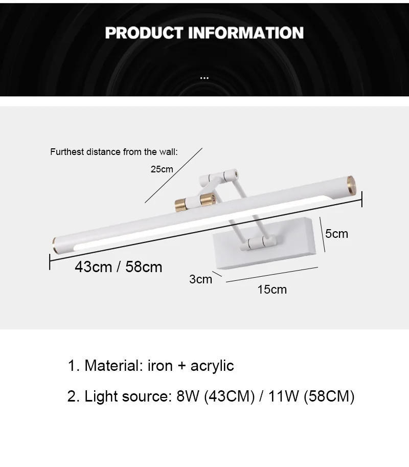 Lamp Modern Bathroom Wall Light 43cm 58cm AC85 – 265V Indoor Lighting Bedroom Wall Sconces Light Fixtures