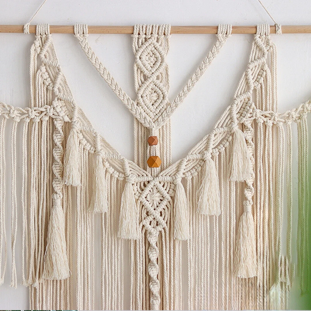 Add a touch of sophistication and warmth to your home with our large tapestry. Hand-woven with intricate tassels, this beautiful macrame tapestry is perfect to bring a Nordic Boho vibe to your living room or bedroom. The creamy white color and classic design make it a versatile and timeless addition to any interior.