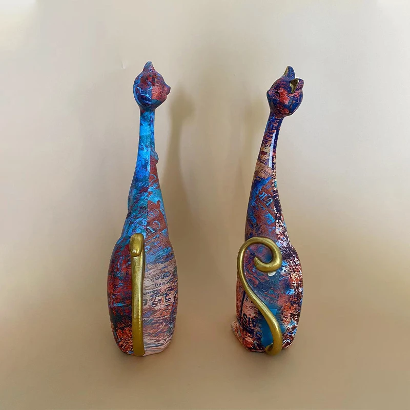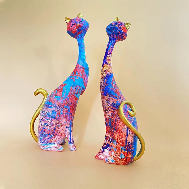 Whether you are in search of a meaningful present for your cherished ones or aiming to enrich your personal home decor, these long-neck cats figurines stand out as a superb option. Their distinctive design and meticulous artistry make them a charming addition to any space, infusing it with an air of grace and chic.