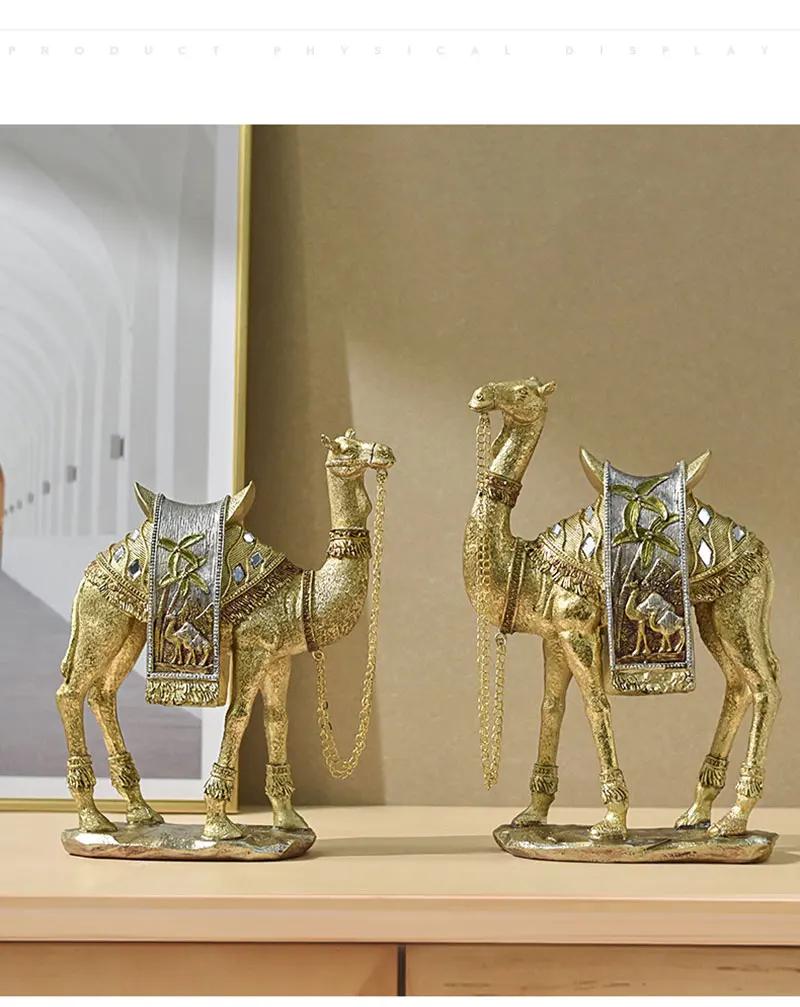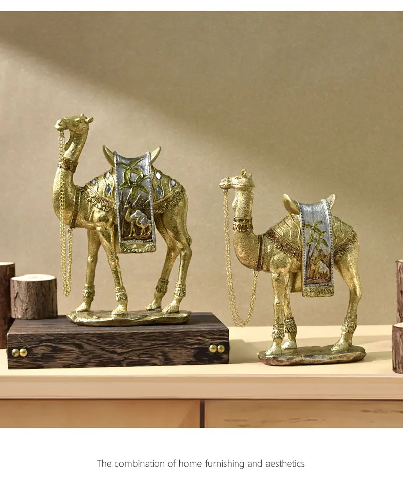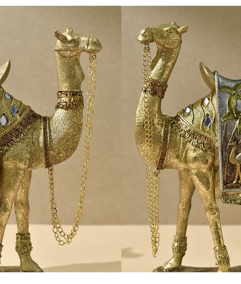 Whether displayed on a shelf, coffee table, or as a standout piece on a bookshelf, this camel sculpture is bound to capture attention, exuding an essence of exoticism and sophistication in any living space.
