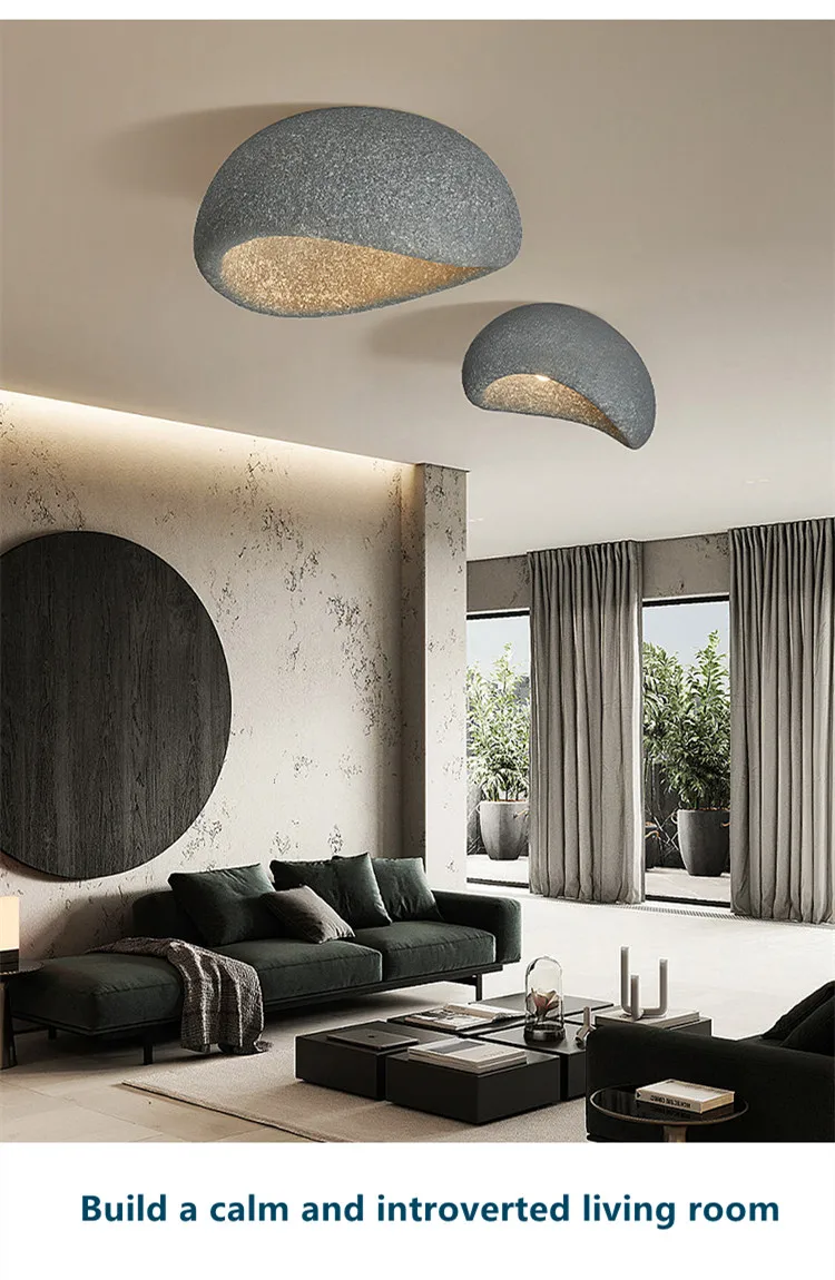 Minimal Stone White Grey Wind Led Lighting Ceiling Lamps Chandelier Dining Room Cafe Decor -
