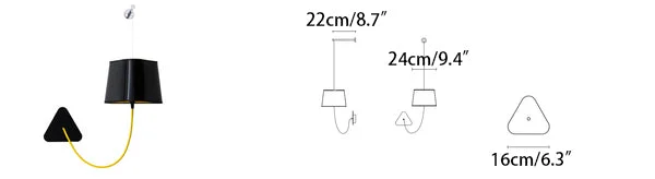 This modern small wall light showcases a lampshade, a woven power cable, a ceiling mount, and an adjustable steel suspension cable. Focusing on minimalism and sleek design, this functional and adaptable wall light brings a touch of architectural sophistication with its triangular lampshade, resulting in a unique interplay of light. Its customizable height offers versatility in placement, making it a flexible lighting solution for any room.