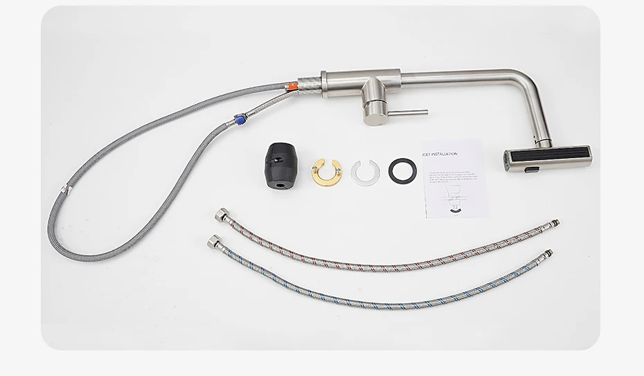 Enhance your kitchen experience with a stylish faucet that blends modern design, practicality, and robustness. This faucet features a flexible spout that provides easy access to all areas of the sink, ideal for cleaning hard-to-reach corners, a waterfall function, hot and cold water control, and 360-degree rotation.