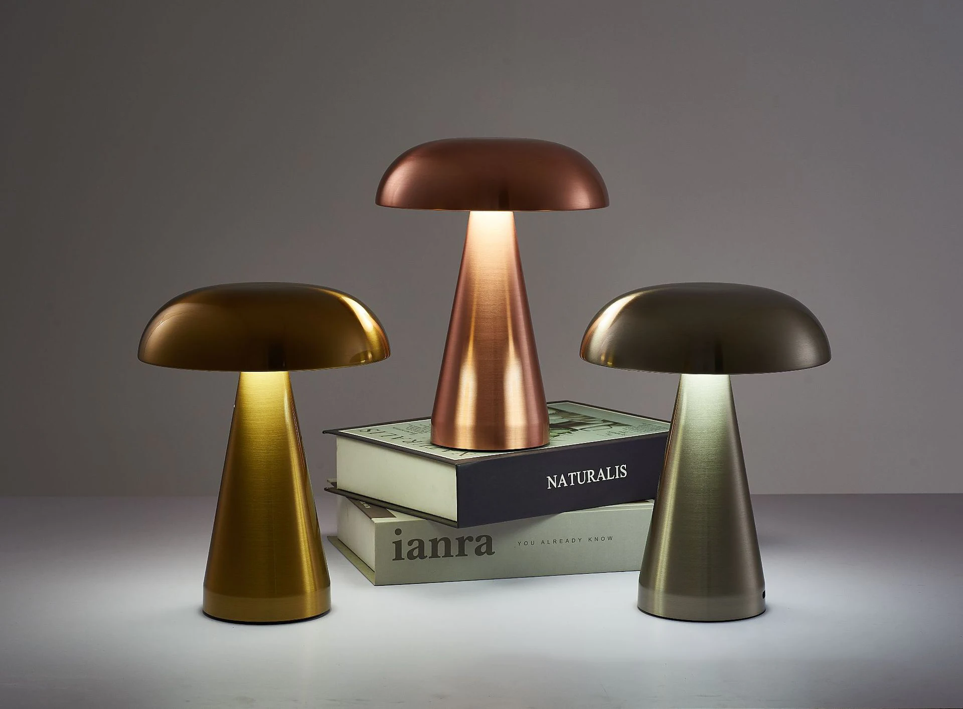 Introducing the Portable Small Mushroom Table Lamp, a delightful night light that you can conveniently recharge via USB. With its modern design, this lamp is available in three stunning colors. Perfect for various settings such as bedside tables, living rooms, and as decorative lighting.