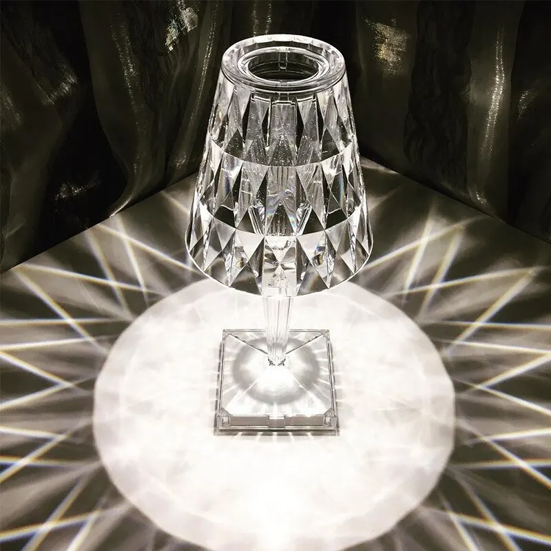 Enhance your space with the Rechargeable Crystal Table Lamp, a stylish addition available in two options. The first choice offers adjustable white light – choose from warm, cold, or neutral tones. The second option features a remote control with a selection of sixteen vibrant colors.