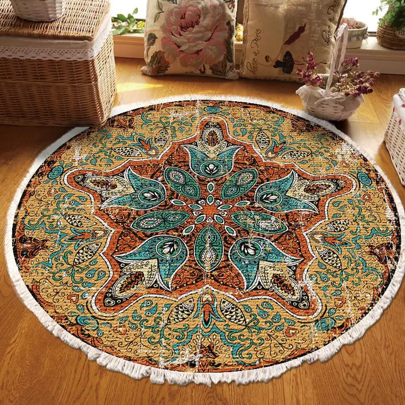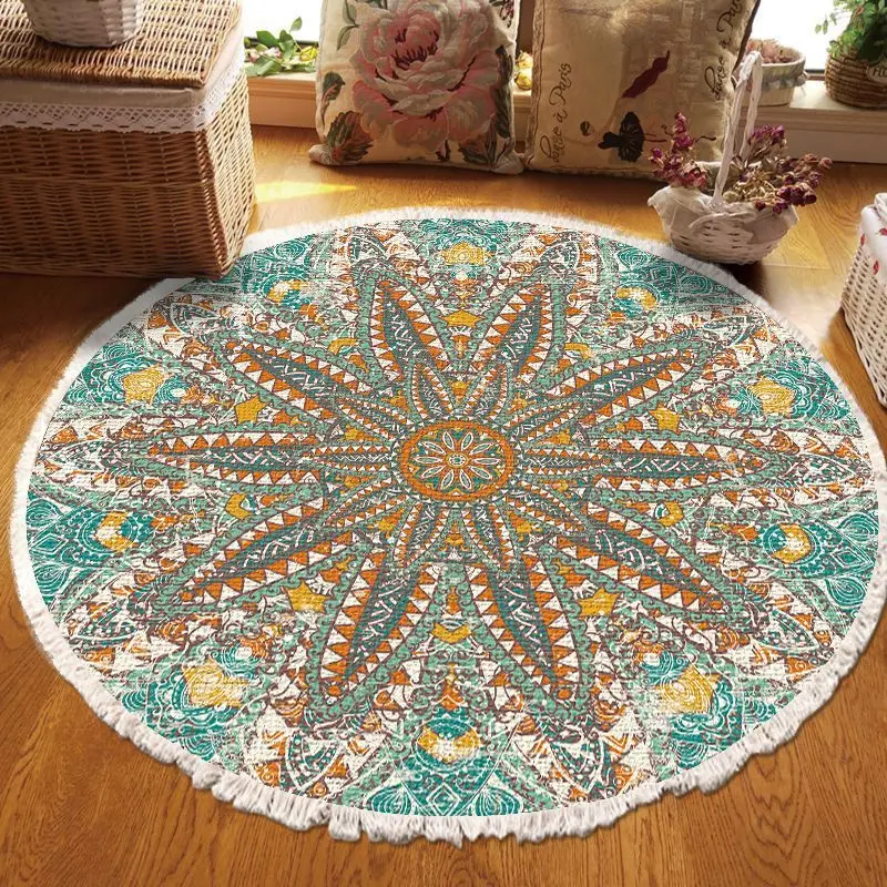 Chill Bohemian Tassel Circle Rugs Living Room Floor Mats Decor Easy to Clean