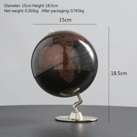 Unlike cumbersome globes that overpower your surroundings, our vintage geographical globe strikes a harmonious balance between size and sophistication. Compact enough to grace any shelf or desk, its presence is compelling enough to attract attention and stimulate discussions. Ideal for living areas, workspaces, or bedside tables as a memento of your travel aspirations.