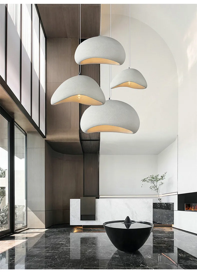 Wabi Sabi Cloud pendant, a blend of modern and retro aesthetics, perfect for illuminating various spaces like dining rooms, living rooms, hallways, or even party areas. With a choice between two elegant colors, this pendant adds a touch of sophistication to any room.